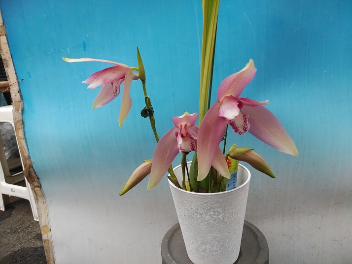 予想外に大きな花です。今までのリカステとは異なり、ペタルが開き1つはピンクのぼかし模様やセミアルバ・純白色など今後まだまだ違った花が咲くと思われます。