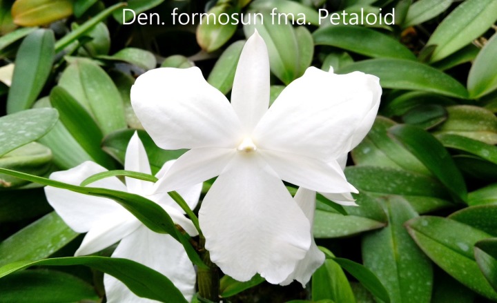 ニューギニア系のカスバートソニーやビクトリアレギネ等のデンドロビュームは寒さに強い蘭ですが、夏の暑さには弱いので、4月~11月は戸外の半日陰に置き、朝夕葉水を与えます。特に真夏は木陰に置き、出来るだけ涼しくする必要があります。花期は不定期で一度開花すると2~4ヶ月咲き続けます。